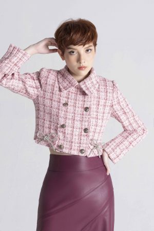 Crop tweed jacket with accessories & Plum faux leather skirt