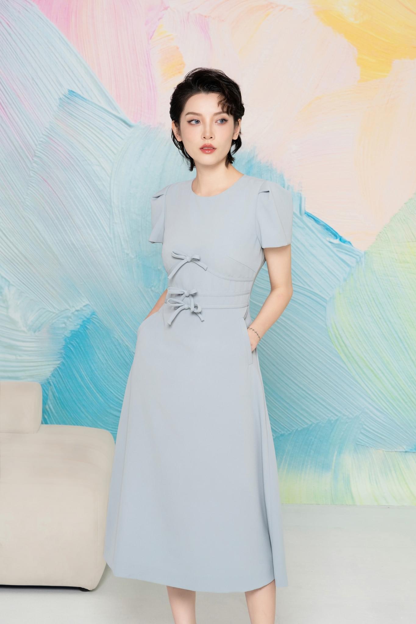 Từ màu xanh nhạt baby blue ngọt mát đến những chiếc nơ trang trí nho nhỏ, mẫu Julia dress toát lên vẻ nữ tính ngọt ngào. Chất liệu chứa nhiều sợi cotton mang đến sự thoải mái và cấu trúc trang phục nhẹ nhàng, tạo nên một sự chuyển động đẹp mắt.