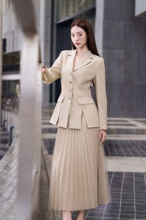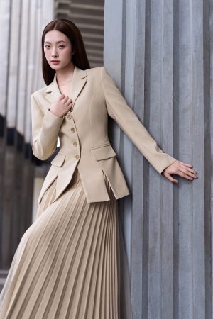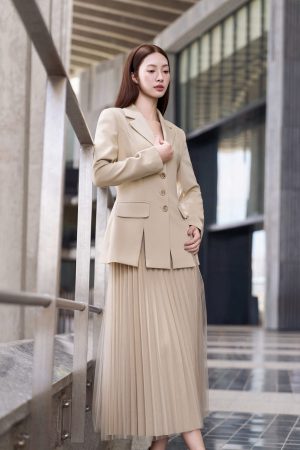 Màu sắc không thể thiếu với tủ đồ trendy năm nay. Màu beige lạnh không pha nhiều sắc ấm dù vẫn nằm trong bảng màu nóng. Phần chân váy được tính toán tinh tế khi mix hai chất liệu tạo sự thanh lịch. Độ sắc nét của chi tiết sản phẩm vẫn luôn là tiêu chí của Renoir. Điểm chạm trực tiếp lên da của mỗi khách hàng chính là điều chúng tôi luôn muốn cải thện hàng ngày, tối ưu nhất có thể, mang lại một trải nghiệm thời thượng đẳng cấp cho các quý cô của Renoir.