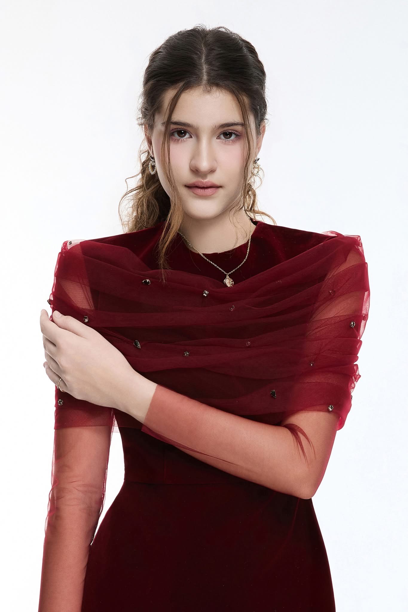 Hạt đá đen đính điểm, nhung mượt mà ôm nhẹ thân, lưới mỏng manh mềm và trong suốt nữ tính. Chỉ cần chút ánh sáng nhẹ cũng vẫn tạo hiệu ứng lung linh, thêm chút âm nhạc, không gian sẽ đẹp theo từng chuyển động của bạn.