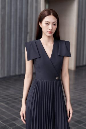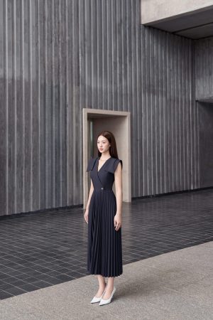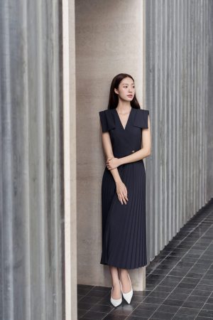 Sự thanh lịch là điều mà các nhà thiết kế Renoir luôn muốn người phụ nữ bộc lộ ra. Chi tiết trang trí trên trang phục không quá cầu kỳ, chỉ vừa đủ tinh tế. Đầm không tay nhưng không lộ vai và nách, phần dưới dập ly xòe mềm xóa đi nhược điểm vùng hông, làm cho từng bước đi uyển chuyển, mềm mại và nữ tính. Màu sắc midnight grey là sự sang trọng cần có để thanh lịch.