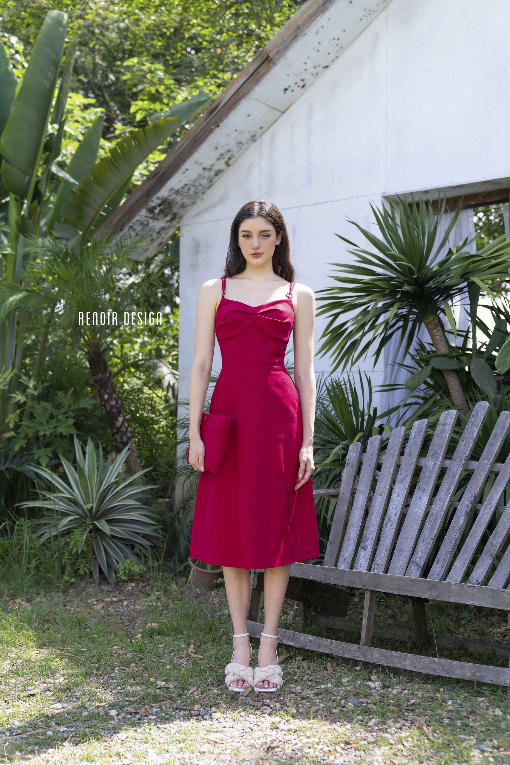 Ruby dress/ Sắc đỏ ruby trên nền chất liệu linen, kết hợp với khuyên gỗ dừa mang lại một trải nghiệm mùa hè rực rỡ nhiều cảm xúc!