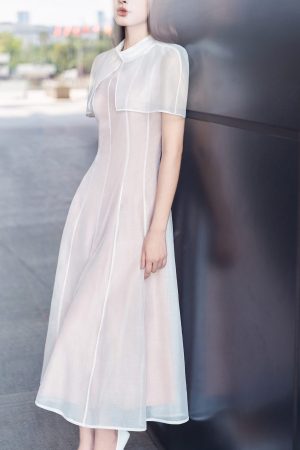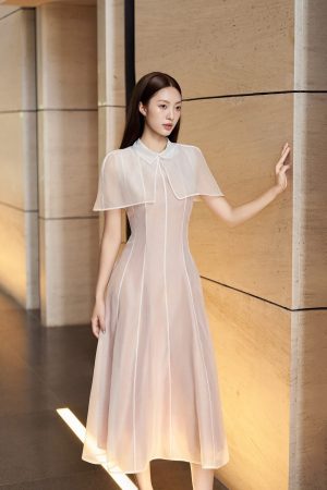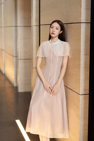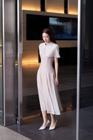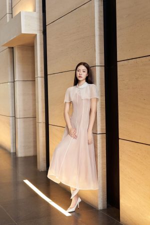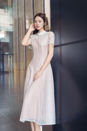 Cảm nhận đầu tiên của thiết kế này là sự nhẹ nhàng. Nhẹ nhàng từ thị giác đến cảm giác của người mặc. Sự dịu dàng, nữ tính của người phụ nữ được thể hiện trong từng đường nét thiết kế cũng như cách lựa chọn chất liệu. Trái ngược với việc cố trở nên sang trọng, fancy, hào nhoáng, phong cách của thiết kế này đến từ chính sự thanh lịch của người phụ nữ lựa chọn mặc nó.